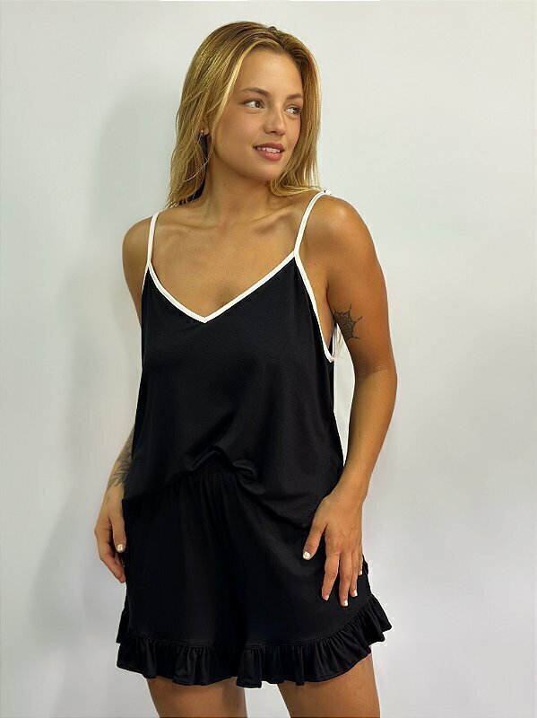 Sinta-se irresistivelmente encantadora com o pijama SHORT DOLL BELLE, sua malha composta por 96% viscose e 4% elastano é uma expressão perfeita de charme com conforto. A blusa apresenta alças finas e reguláveis, permitindo que você ajuste conforme sua preferência, tornando o designer delicado e gracioso. O short é projetado com um elástico na cintura proporcionando praticidade e um ajuste confortável, além do encantador babado na barra que adiciona um toque romântico ao conjunto.