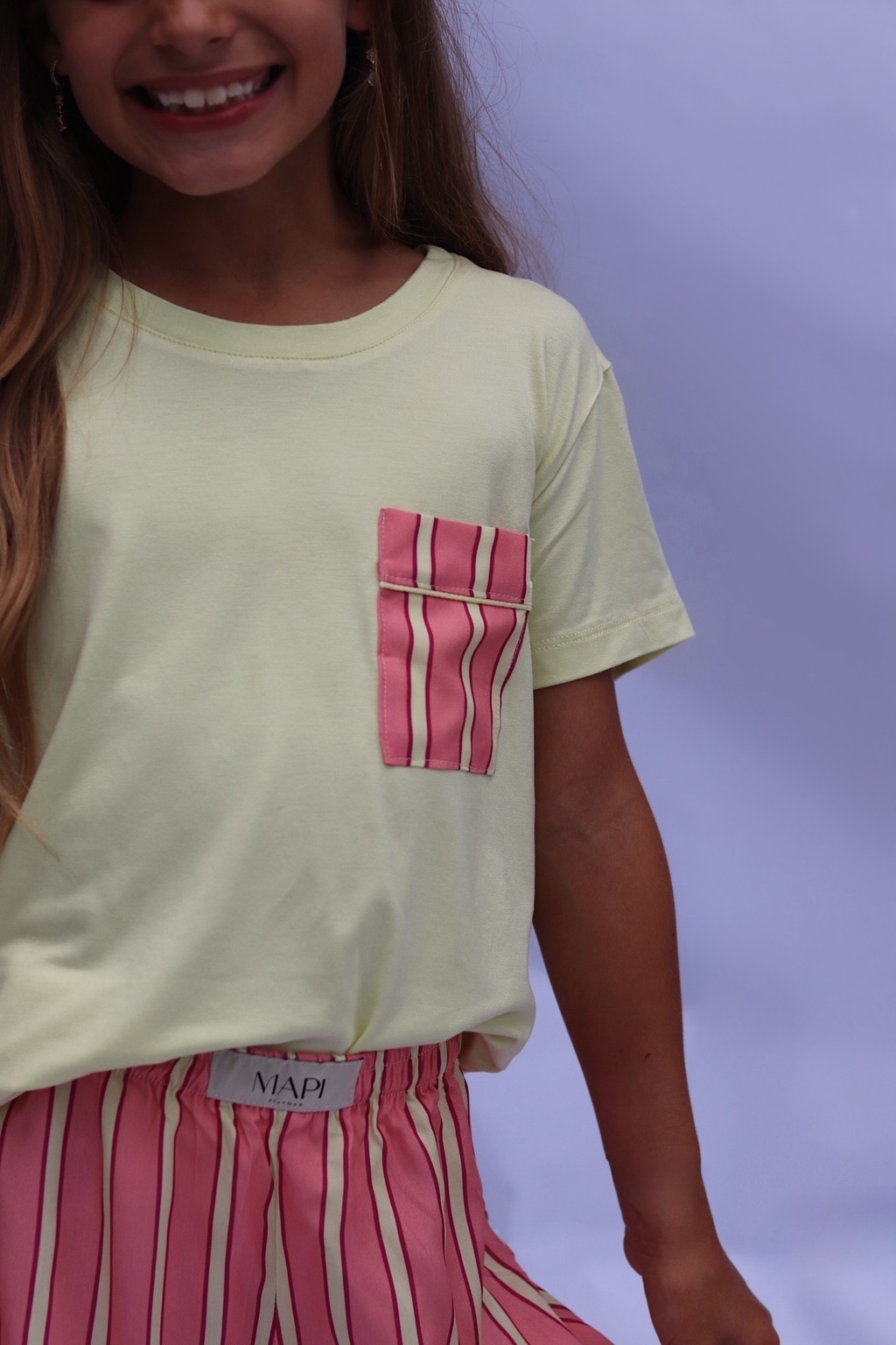 • Camiseta: Modelagem soltinha,gola redonda, manga curto e bolso estampado que dá um charme especial.