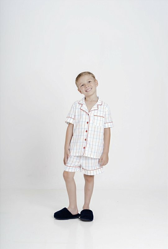 Feito com tecido 100% algodão, este pijama proporciona uma sensação suave e agradável ao toque. A camisa conta com botões e um prático bolso na lateral, adicionando um toque funcional e elegante ao conjunto. Além disso, o pijama pode ser personalizado com bordado das iniciais, tornando-o exclusivo para cada criança. O short possui elástico na cintura, proporcionando um ajuste perfeito e confortável. Também conta com um bolso traseiro, oferecendo praticidade sem perder o estilo.
